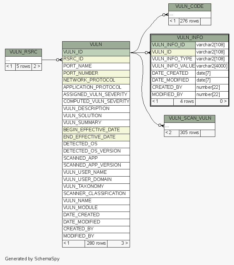 | Table ESEC.ESECDBA.VULN_INFO | Generated by SchemaSpy |