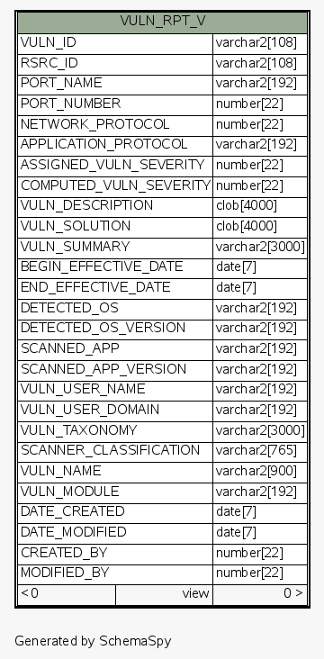 | View ESEC.ESECDBA.VULN_RPT_V | Generated by SchemaSpy |