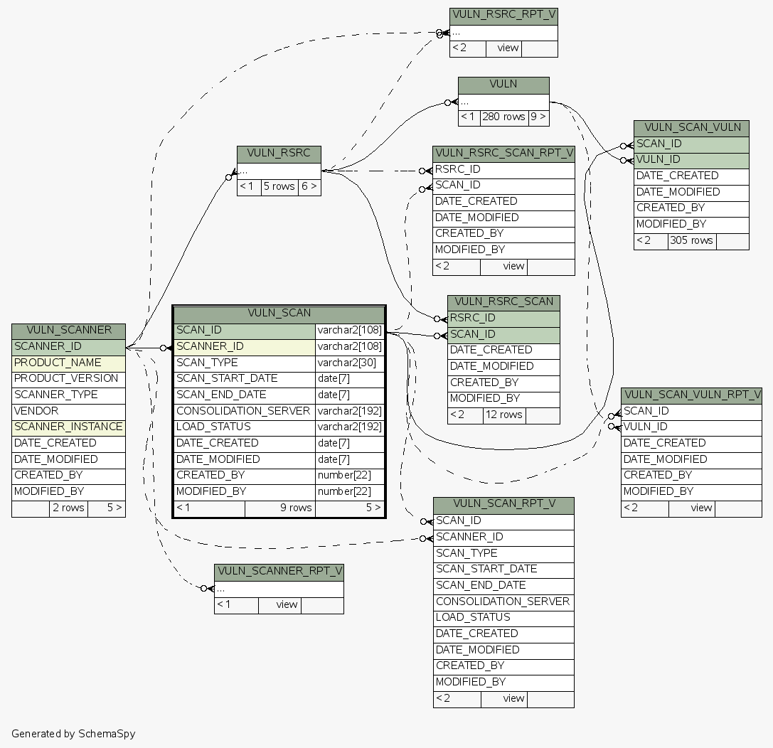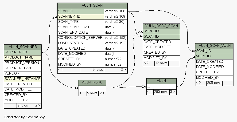 | Table ESEC.ESECDBA.VULN_SCAN | Generated by SchemaSpy |