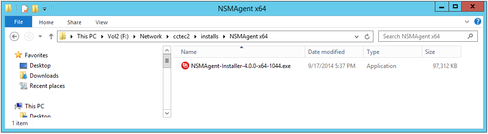 Copy the NSM Agent installation executable file to the already defined software distribution folder.
