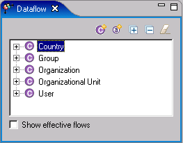 The following figure illustrates the Dataflow view. You can use it to control the flow of data between the Identity Vault and connected systems. The Modeler displays the dataflow.