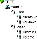 Each trailing period changes the resolution point one container toward the top of the tree. For example, suppose you want to change your workstation's current context from Timmins to Allentown in the example in Figure 12.