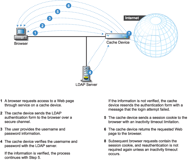 This options lets users authenticate using a designated field name stored in the LDAP database. You must specify the field name to be used, the LDAP containers from which the field name search should begin, and the method the cache device should use to communicate with the LDAP server.