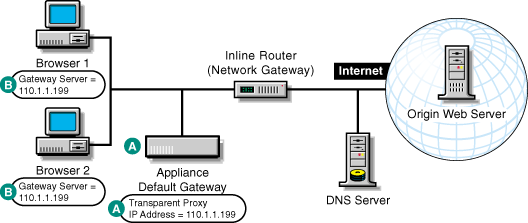 See B in Figure 16. Use the transparent proxy IP address as the gateway IP address. |