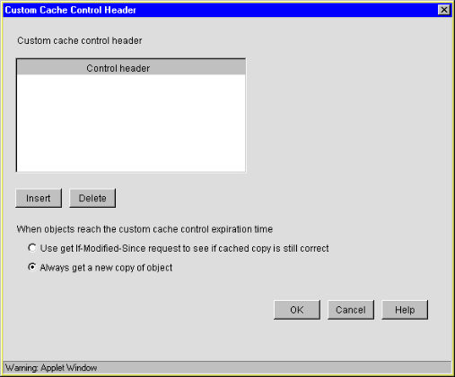 For details on how the headers work, see Custom Cache Control Header Dialog Box.