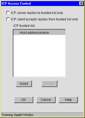 ICP Client Accepts Replies from Trusted List Only: If this box is checked, the ICP client will only accept responses from the appliances listed in the ICP Trusted list.