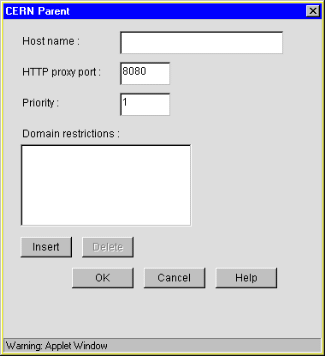 The CERN Parent dialog box lets you define a CERN parent for the appliance.