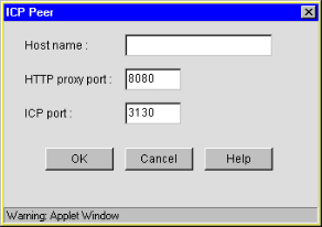 The ICP Peer dialog box lets you define an ICP peer for the appliance.