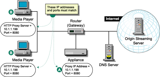 Configure forward proxy services for your Windows Media Player using HTTP. |