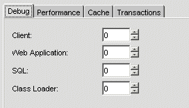 The Debug options in the SMC enable the printing of server debug messages to the server console. Options include debugging client requests, Web applications, and SQL statements. You should activate debugging options only for application debugging purposes, as this activity can significantly inhibit server performance.