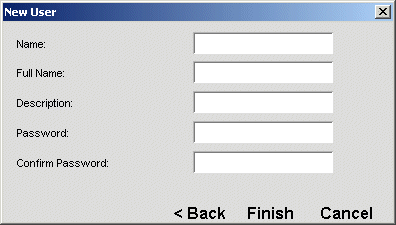The Name field specifies the short name for the user. This is the name the user types in the Login box.