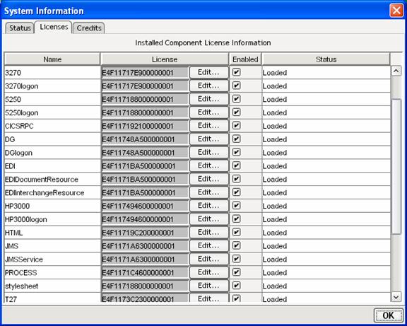 Within the Composer designer, you can enable any of the Composer solutions using the Systems Information dialog’s Licenses tab. Navigate to the System Information dialog from the Help / About exteNd Composer menu item. Press the System button and click the Licenses tab.