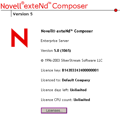 Copyright © 2003 Novell, Inc. All rights reserved. Copyright © 1997, 1998, 1999, 2000, 2001, 2002, 2003 SilverStream Software, LLC. All rights reserved. more ...