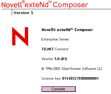 If the target server is Novell exteNd Application Server: Navigate to the default host address and port (for example, http:\\localhost:80.) A master console window similar to the following will appear, with a list of links. Click the exteNdComposer link.