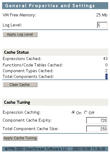 The General Properties page of the Composer Enterprise Server console gives you the ability to inspect cache statistics as well as adjust caching parameters. This section, and the sections that follow, address the various issues you need to know about in order to use this portion of the console to best advantage.