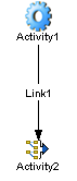 The activity icons, in this case, represent Composer Components. A link connects the two activities. The fact that the link icon is diamond-shaped means a custom transition condition has been specified for the link. (Links without custom conditions have no diamond icon and just show the word "Link".)
