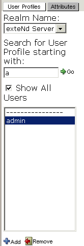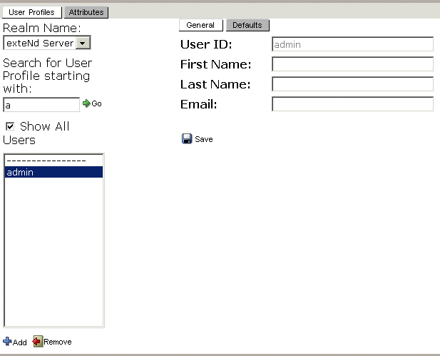 The User Profiles page allows authorized users to add and remove user profiles by selecting from a list. In a non-LDAP realm, profiles are stored in the application database and thus do not necessarily have a one-to-one correspondence with users. In an LDAP realm, however, each user record is the user profile.