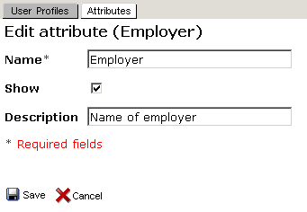 The User Profiles page allows you to manage the attribute values associated with a user profile: