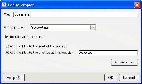 If adding files, click Browse and navigate to the appropriate directory and select one or more files (archives or project files) and click Open. You can press Ctrl+Click to add multiple noncontiguous files and Shift+Click to add multiple contiguous files.