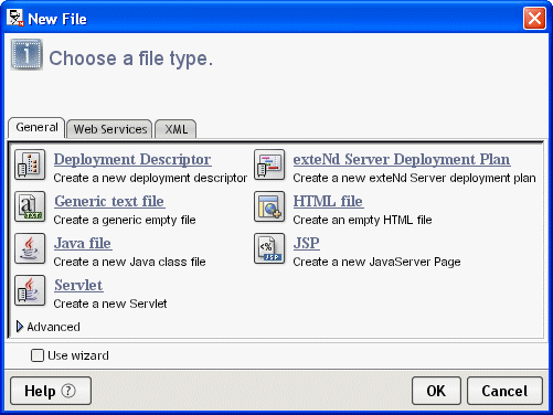 The wizard fills in a deployment name (based on the project type) after you enter a project location. Each archive stores its own set of deployment information in this XML deployment descriptor source file. exteNd Director creates the default deployment descriptor name and location (based on archive type) when you build and archive the project. In most cases you should accept the default name and location. If you are converting an existing archive project (by creating a new project file), enter the name of the deployment descriptor file on disk. If you want to have multiple J2EE subprojects of the same type sharing the same deployment descriptor directory location, see Deployment Descriptor Location (below). The deployment descriptor name you enter here affects only the source file namenot the file name that is used in the JAR. When exteNd Director builds the archive, it includes this deployment descriptor file in the archive using the standard name and location defined by the J2EE specification for the archive type.