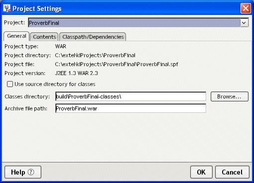 (Optional) On the Contents tab of the Project Settings dialog, change the classes directory to match the revised project name. This ensures that the new project name will appear as a subdirectory of the build directory.