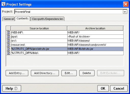 When you have added, positioned, and edited all required classpath entries, click OK to close the Project Settings dialog.