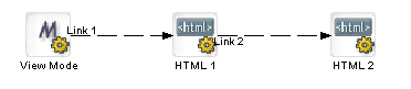 Simple links provide an easy way to choose between multiple target activities. When an activity finishes processing, you can use expressions on simple links to determine which activity should be executed next. For example, you could use expressions on Link 2 and Link 3 in the following pageflow to determine whether HTML 2 or HTML 3 would be displayed after HTML 1: