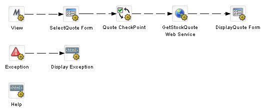 You can use smart linking to reduce clutter in a pageflow diagram. Smart links do not actually appear on the pageflow diagram. Instead, they are resolved dynamically at runtime. Smart linking is particularly useful when many activities link to a common activity. For example, you might want to use smart linking to allow all of the activities within a flow to link dynamically to a common Help page: