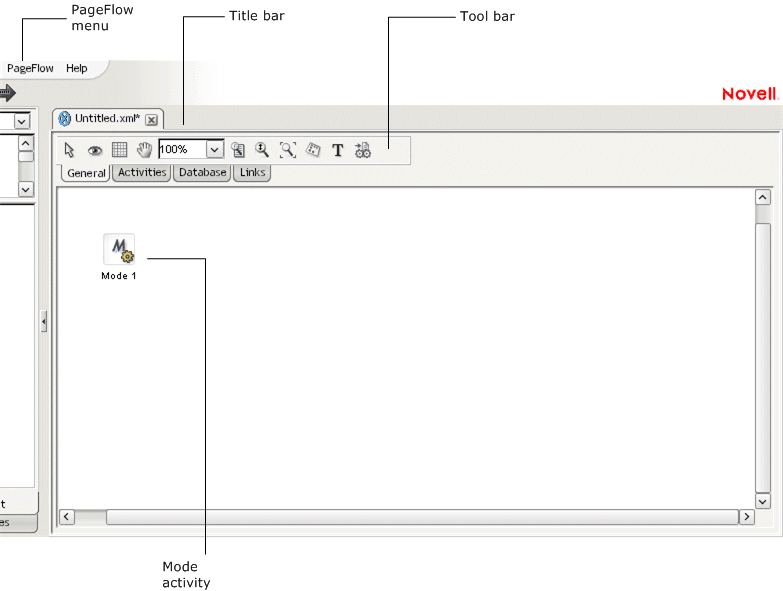 The main window of the Pageflow Modeler opens in the editing area. The Mode activity is automatically added to the process: