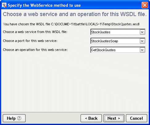 In the WSDL file field, specify a path to the WSDL file that describes the service.