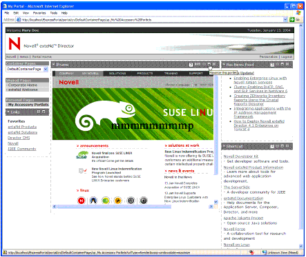 The default ExpressPortal page displays. Notice the new item My Accessory Portlets listed under Personal Pages in the navigation pane: