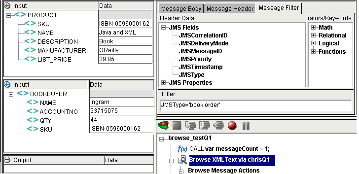 The JMS Component Editor allows you to create actions that involve sending, receiving, or browsing messages, optionally as part of a transaction. The powerful XML mapping capabilities of exteNd Composer allows you to map XML information between messages and DOMs with ease, while also permitting the transformation of data with business logic. JMS Components created in exteNd Composer thus bring sophisticated messaging capabilities to XML integration applications.