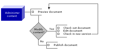 To prevent concurrent access to documents in a multiuser environment, the CMS Administration Console provides checkin and checkout capability to users with READ, WRITE, and LIST permissionstypically the users who are content developers and administrators.