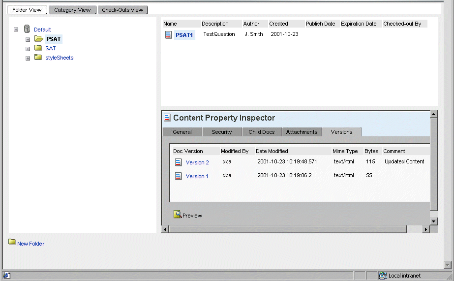In this example, any user who selects the document PSAT1 can preview its two versions.