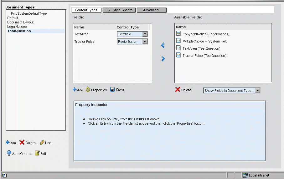 There is another side effect of deleting document types: any fields that were created within that document type are adopted by a new parentthe system document typethat appears in the Document Types list as _PmcSystemDefaultType.
