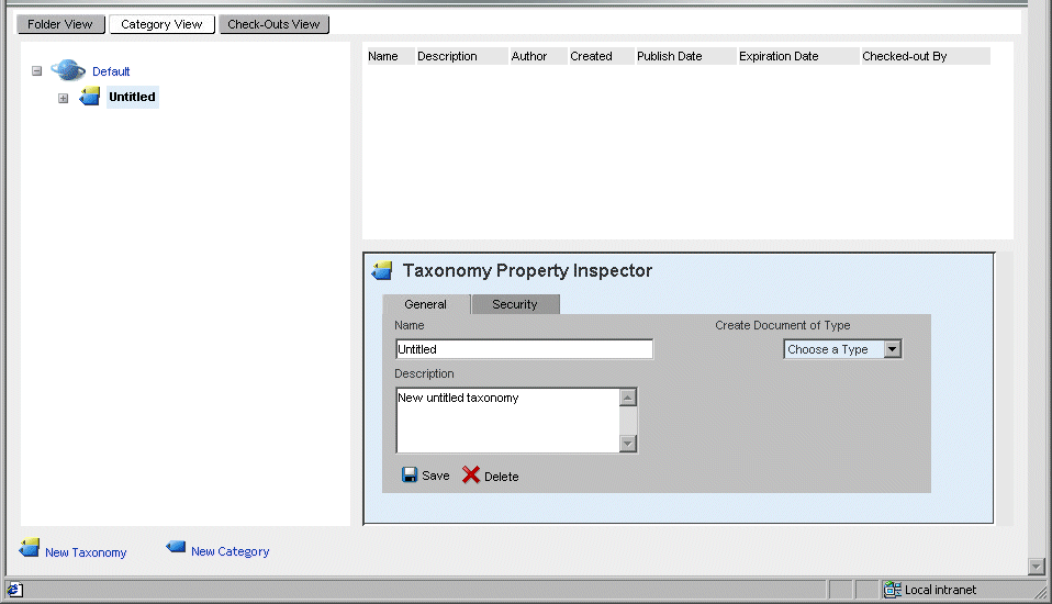 Click the New Taxonomy icon, located in the bottom-left panel of the CMS Administration Console.