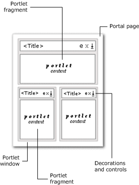 A portlet window is an area on a portal page that consists of the content generated by the portlet, along with decorations and controls added by the portal. Each portlet window is constructed from a portlet class that is associated with a preferences object. The preferences object provides access to the values of preferences and settings specified in the portlet deployment descriptors.