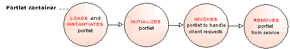 Portlets move through several stages from initial activation to final deactivation. These stages constitute the portlet life cycle, as shown in the following diagram: