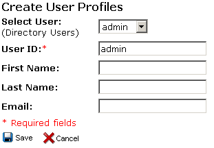 The User Profiles page allows authorized users to add and remove user profiles by selecting from a list. In a non-LDAP realm, profiles are stored in the application database and thus do not necessarily have a one-to-one correspondence with users. In an LDAP realm, however, each user record is the user profile.
