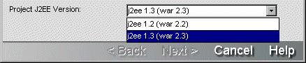 When you create a generic J2EE project, you can specify the J2EE version (1.2 or 1.3) of the archive that the project represents. The default is J2EE 1.3.