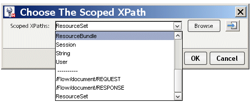 The XPath Navigator is an interactive tool that allows you to specify the path using a tree view (where applicable) and the XPath expression builder. The available options depend on the scoped path you selected.
