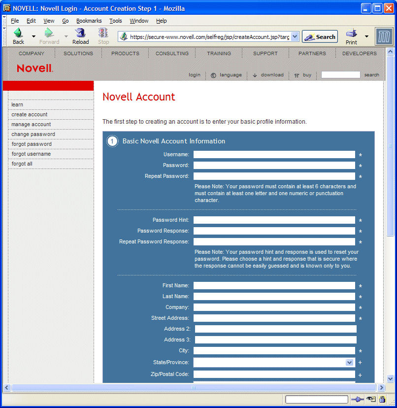 In this exercise, you will create an account on Novell Forge, a Web site that supports form-based authentication. Novell Forge provides the ability to create, manage, and contribute to open-source software development projects.