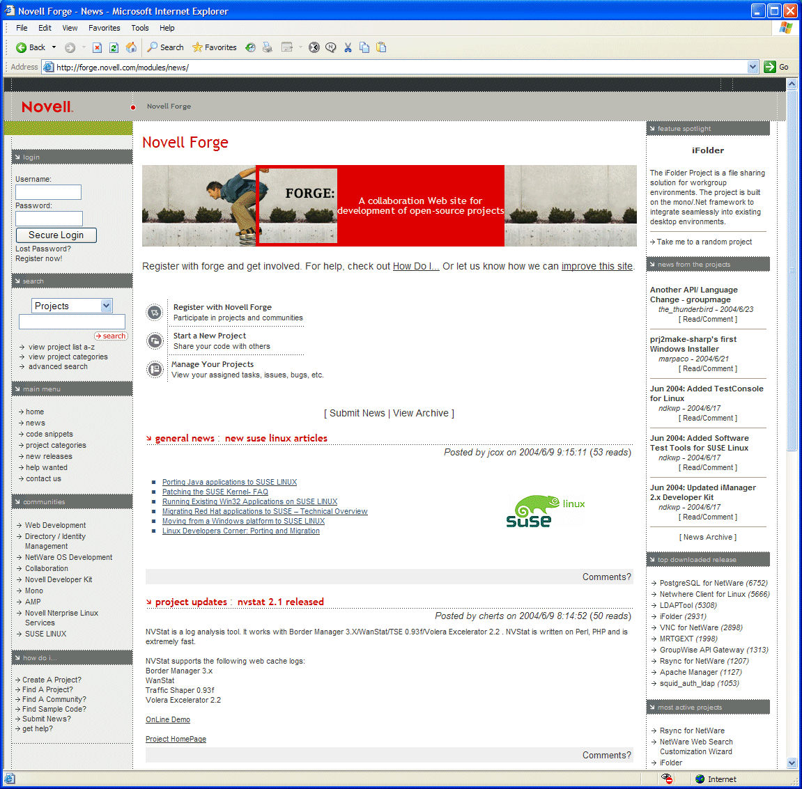 Browse the Novell Forge site for information about collaborative, open-source development projects.