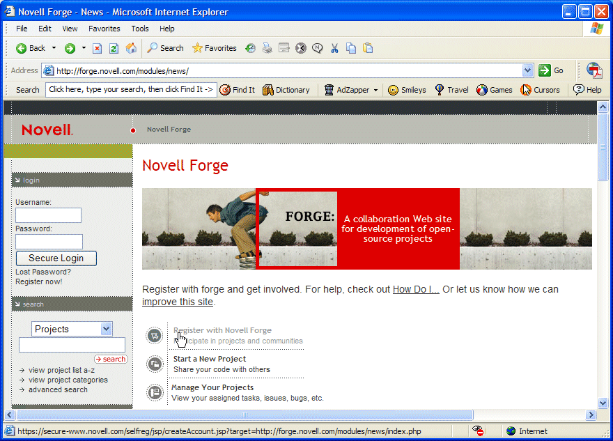 Click Register with Novell Forge.