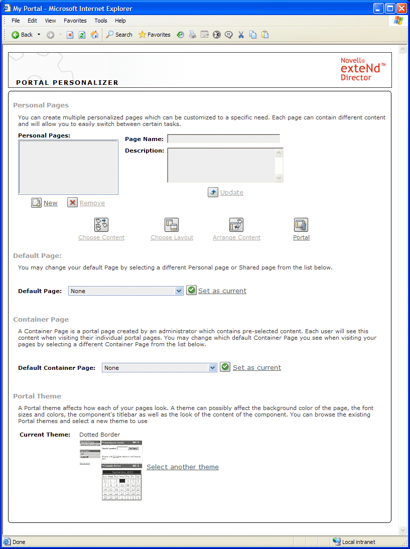 Now you are ready to create a personal page with accessory portlets. Leave the default user page running in the browser and move to the next exercise.