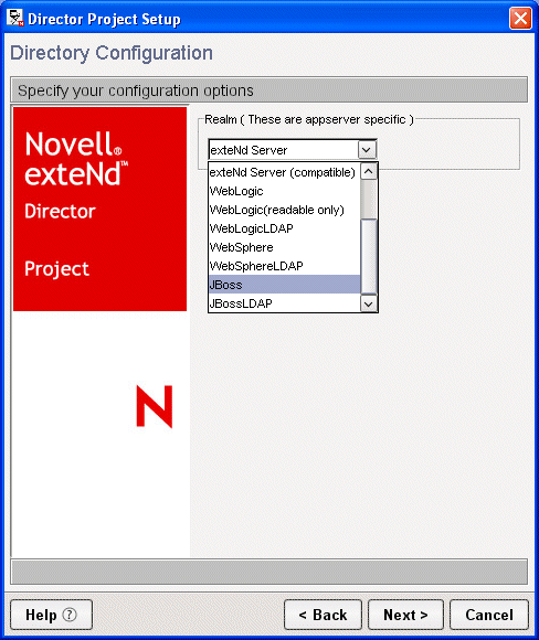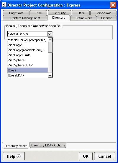 NOTE: When you choose one of the JBoss realms, the Director Designer modifies the JBoss server's /conf/login-config.xml file. You can learn more about what it adds in the What happens when you use a JBoss realm.