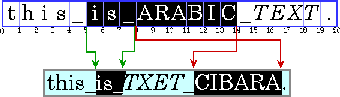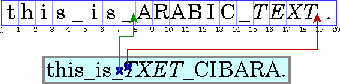 Note: In this and subsequent examples, Arabic and Hebrew text is represented by uppercase letters and spaces are represented by underscores. Each illustration contains two parts: a representation of the characters stored in memory (the characters in logic al order) followed by a representation of how those characters are displayed (the characters in visual order). The numbers below the character boxes indicate the insertion offsets.