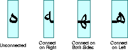 Depending on the context, these cursive forms can differ radically in shape. For example, the Arabic letter heh has the four cursive forms shown in Figure 4-2.