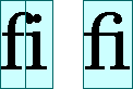 Although these four forms are quite different from one another, such cursive shape-changing is not fundamentally different from cursive writing in English.In some contexts, two glyphs can change shape even more radically and merge to form a single glyph. This type of merged glyph is called a ligature. For example, most English fonts contain the ligature fi shown in Figure 4-3. The merged glyph takes into account the overhang on the letter f and combines the characters in a natural-looking way, instead of simply letting the letters collide.