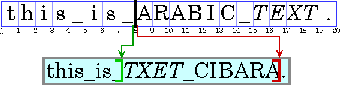 Even though they are part of an English sentence, the Arabic words are displayed in the Arabic script order, right-to-left. Because the italicized Arabic word is logically after the Arabic in plain text, it is visually to the left of the plain text.When a line with a mixture of left-to-right and right-to-left text is displayed, the base direction is significant. The base direction is the script order of the predominant writing system. For example, if the text is primarily English with some embedded Arabic, then the base direction is left-to-right. If the text is primarily Arabic with some embedded English or numbers, then the base direction is right-to-left.
